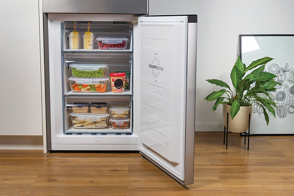 Умная система поддерживает постоянную температуру в холодильнике независимо от того, как часто вы открываете дверцу. Она непрерывно следит и анализирует, как и когда вы пользуетесь холодильником, а также управляет температурой, чтобы сохранить свежесть продуктов и снизить потребление электроэнергии.